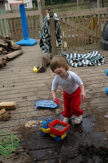 Since the weather has warmed up a bit here the kids have been loving going outside. In doing so they have discovered a new love of Dirt+Water=MUD!! Everyday they can they go out and make dirt cakes and mud pies. They then call me out and sing Happy Birthday to me with cake in hand! They usually need a bath afterwards but I'm ok with that, I'm just glad they are able to spend some extra time outside.